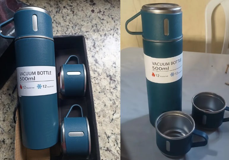 ☕️ Caneca Kit Garrafa Térmica Vacuum Bottle Inox 500ml + 3 Xícaras