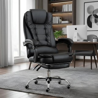✅ Cadeira De Escritório Presidente Ajustável Preto Couro Sintético