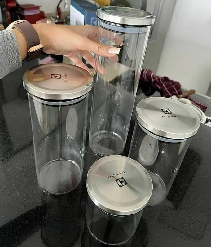 ✅ Conjunto 4 Potes Herméticos De Vidro Tampa Inox Electrolux