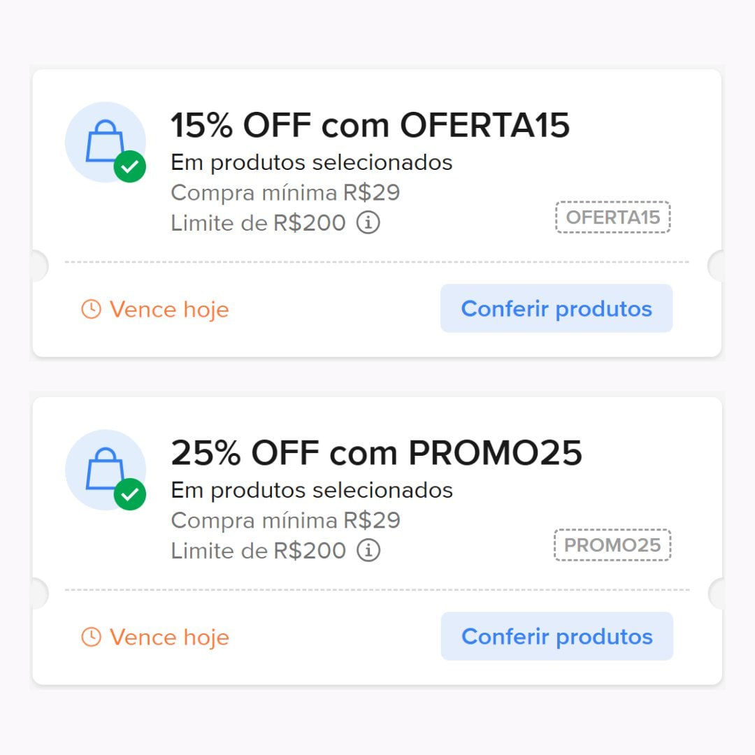 ➡️ 15% OFF em R$29, limitado a R$200 OFF