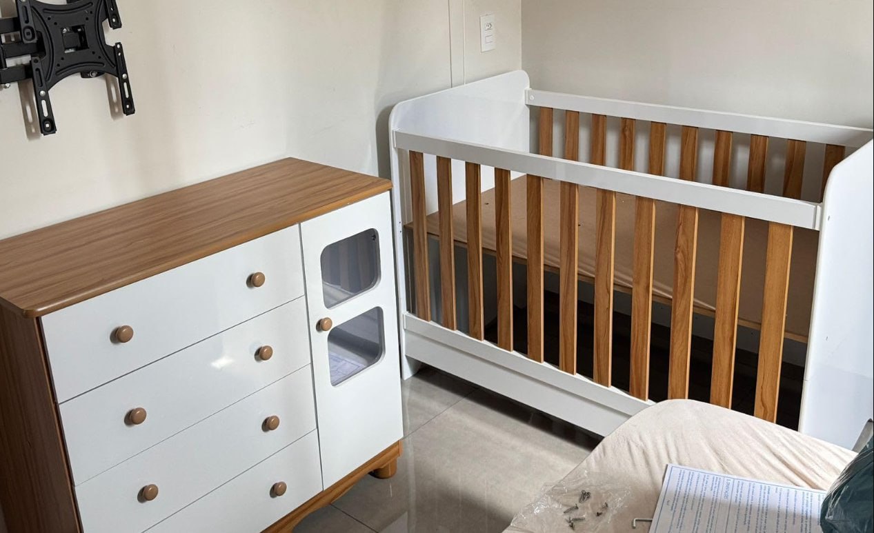 👶 Berço Ben 3 em 1 + Cômoda Uli 4 Gavetas