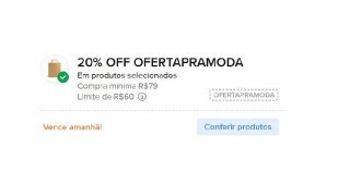 ➡️ 20% EM MODA, a partir de R$79, Limite R$ 60 OFF