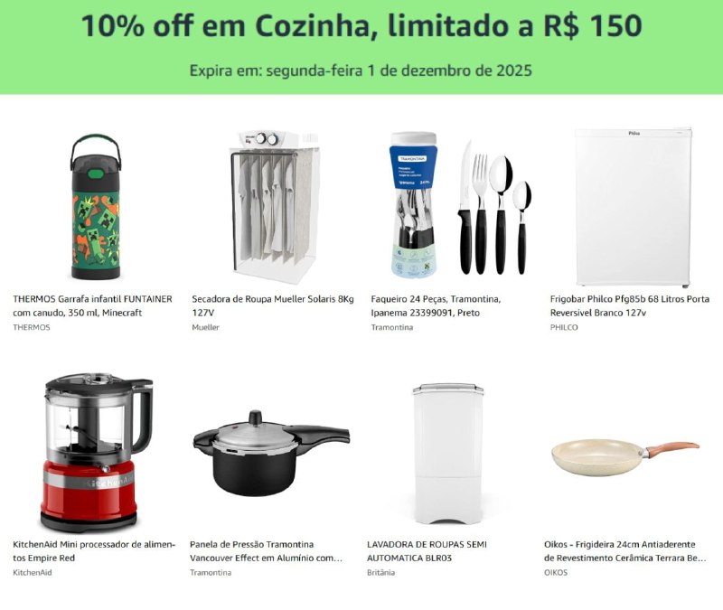 🚨 10% OFF EM COZINHA NA AMAZON, LIMITADO A R$150 OFF