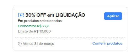 30% OFF EM PRODUTOS SELECIONADOS NO MLClique em “Mostrar mais” e resgate o cupo…