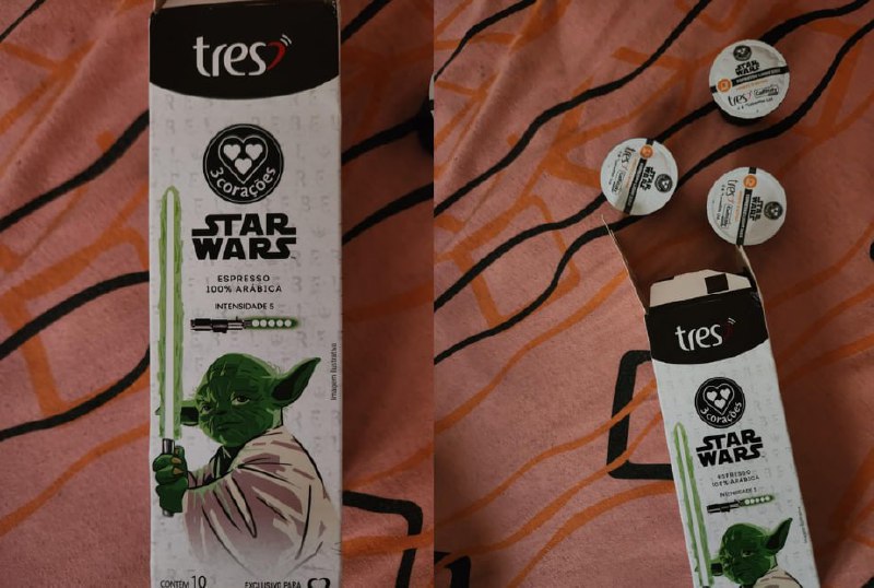 ☕️ Cápsula de Café Espresso Star Wars Mestre Yoda TRES 3 Corações 10 unid
