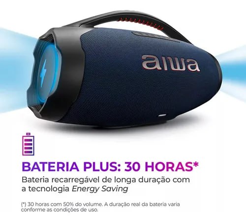 ‼️ Caixa de Som Boombox Plus AIWA BBS-01-LBL 200W Bluetooth 30H IP66 USB RGB