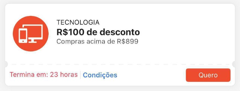 💻 R$100 OFF em compras a partir de R$899 (categoria Tecnologia)