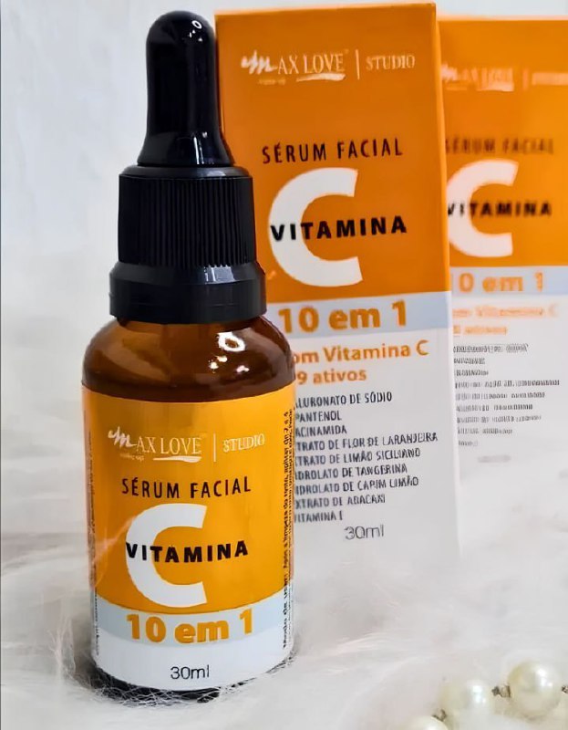 🍊 Sérum Facial Vitamina C, 10 em 1, Pele Hidratada, Macia e Iluminada, 30ml, Max Love