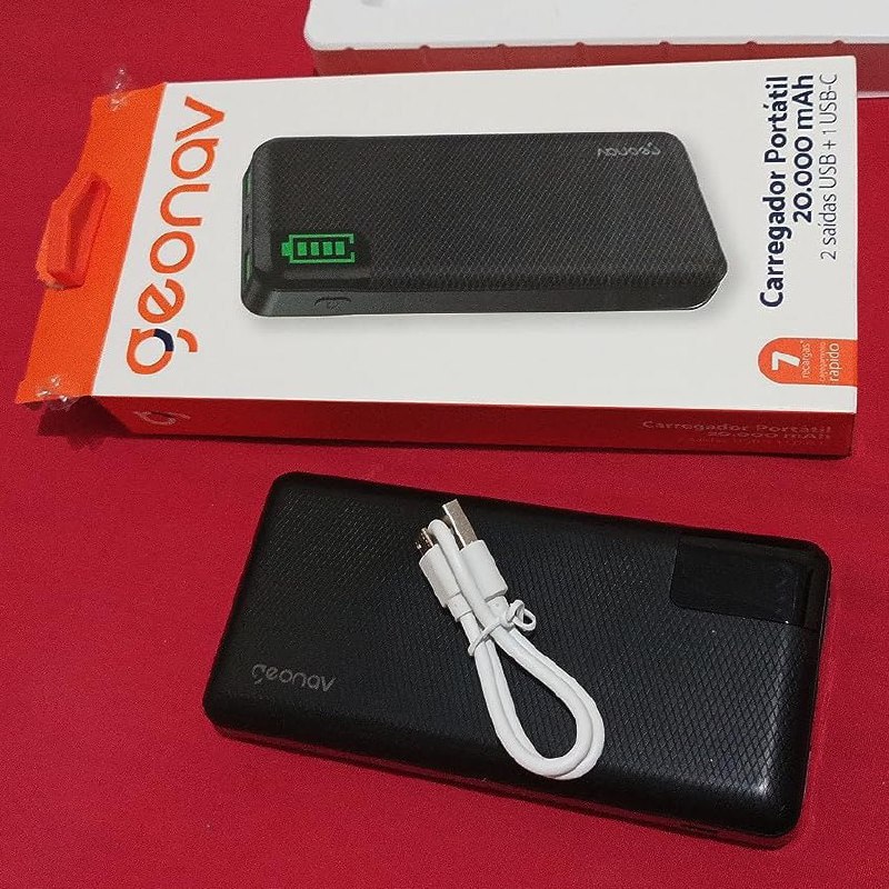 ⚡️ Geonav Power Bank, Carregador Portátil Universal 20.000mAh – Preto e Branco