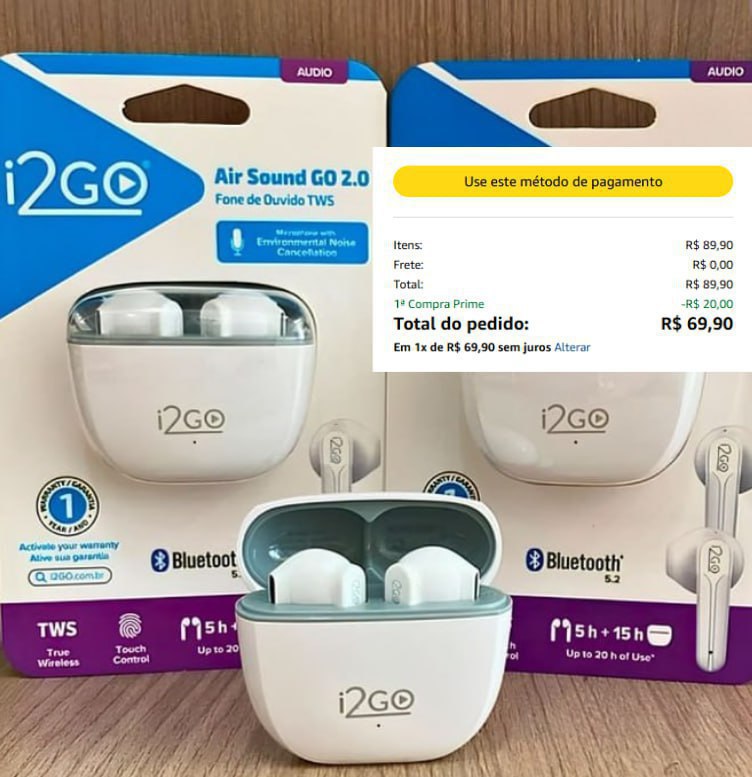 FONEZINHO SHOW Fone de Ouvido TWS Air Sound Go 2 i2GO PRO – Branco DE 149,90 | P…