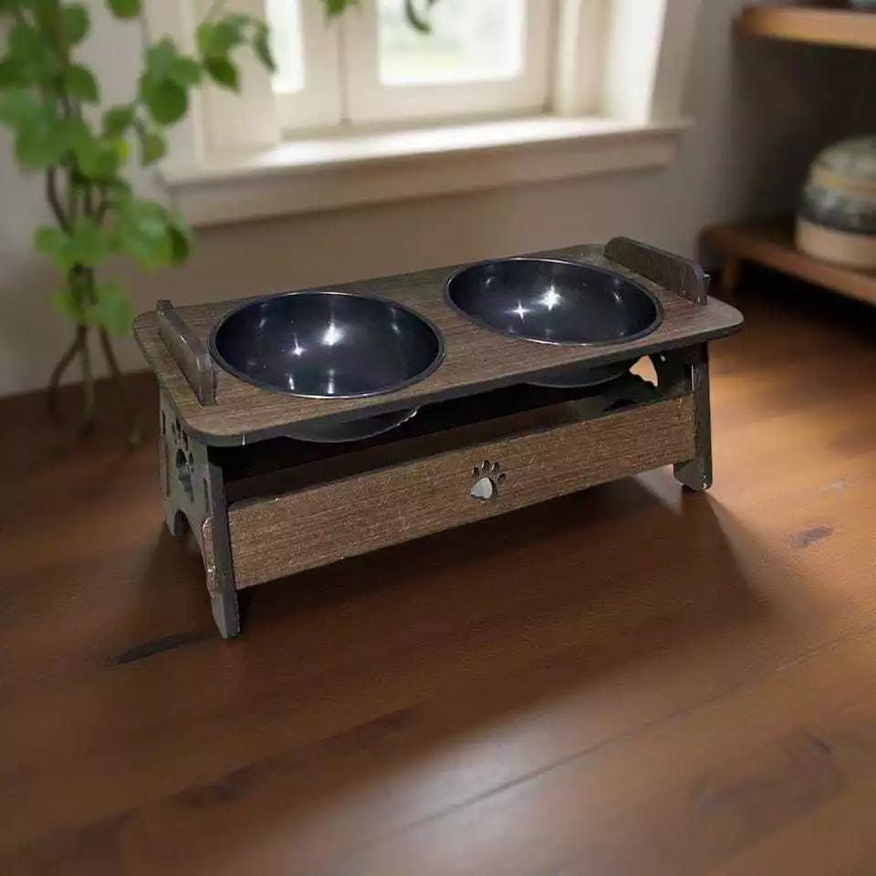 ✅ Comedouro Elevado em MDF com 2 Tigelas