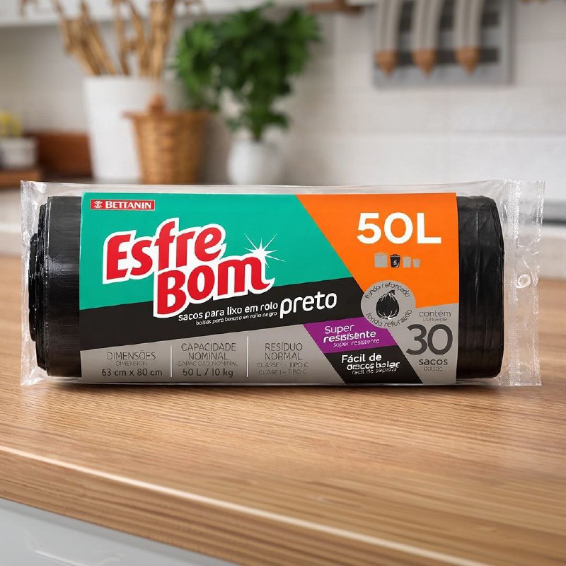 🗑 Saco para Lixo Preta EsfreBom, Rolo com 30 Sacos de 50 Litros
