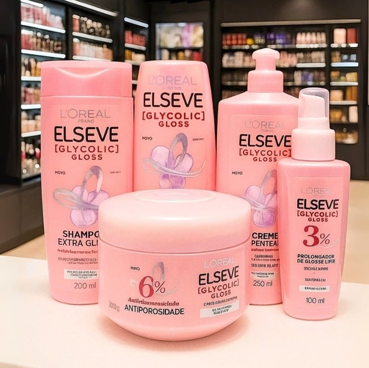 ✅ Kit Elseve Glycolic Gloss Shampoo + Condicionador + Máscara + Acidificante + Sérum