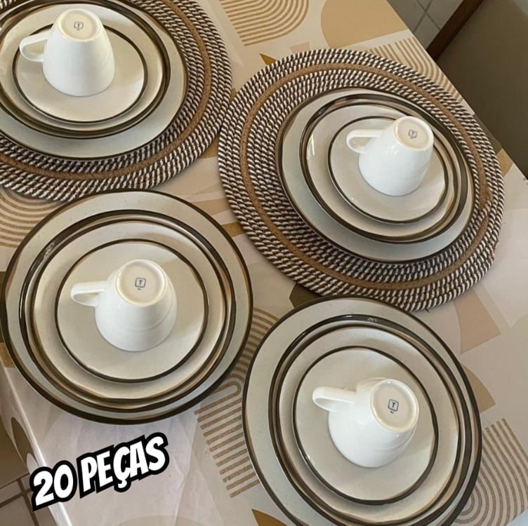 MESA POSTA PRA PARECER RICO! Aparelho De Jantar Canyon Porcelana 20 Peças Tramo…