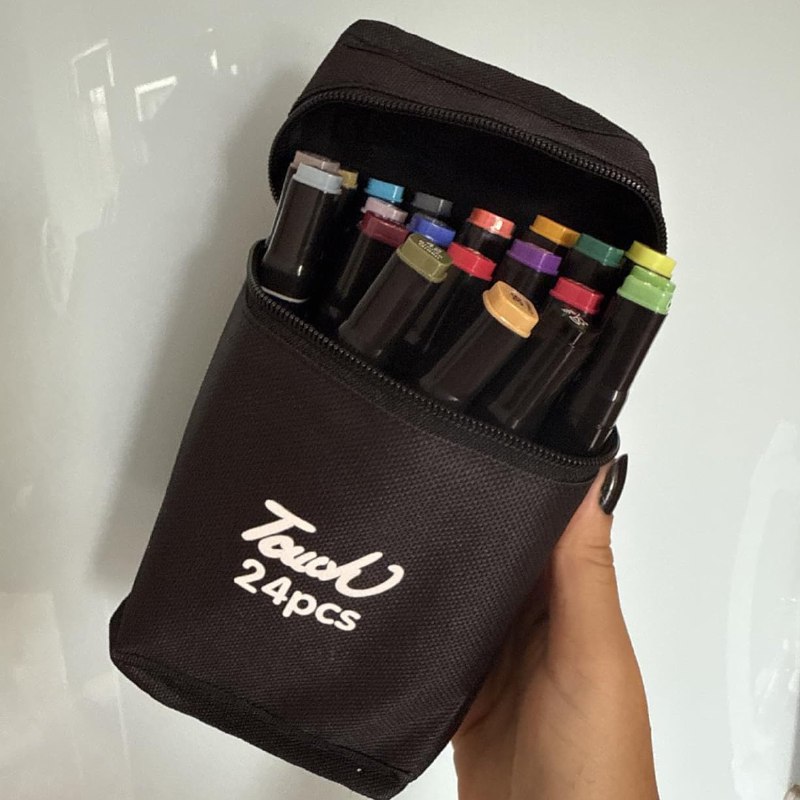 ✍️ Kit de 24 Canetas Coloridas Marcador Permanente Ponta Dupla Touch