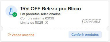 Início » Ofertas » NOVO CUPOM MERCADO LIVRE 15% OFF em R$139, limitado a R$25 OFF cupom: CARNAMELI… Ofertas NOVO CUPOM MERCADO LIVRE 15% OFF em R$139, limitado a R$25 OFF cupom: CARNAMELI… 7 de fevereiro de 2026 1 View 0 🚨 NOVO CUPOM MERCADO LIVRE ➡️ 15% OFF em R$139, limitado a R$25 OFF🎟 cupom: CARNAMELI 🔗 https://mercadolivre.com/sec/2bm1GLT Participe dos nossos Grupos de Ofertas 🙂