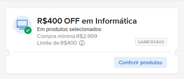 Início » Ofertas » NOVO CUPOM MERCADO LIVRE PARA GAMERS R$400 de desconto em notebooks gamers sel… Ofertas NOVO CUPOM MERCADO LIVRE PARA GAMERS R$400 de desconto em notebooks gamers sel… 3 de março de 2026 0 Views 0 🚨 NOVO CUPOM MERCADO LIVRE PARA GAMERS 📣 ➡️ R$400 de desconto em notebooks gamers selecionados.🎟 CUPOM: GAMERS400 🔗 https://mercadolivre.com/sec/1wvJvfK Participe dos nossos Grupos de Ofertas 🙂