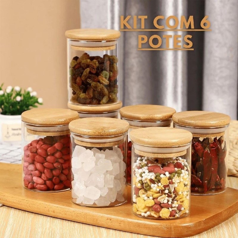 ✅ Kit 6 Potes de Mantimentos Herméticos 200mL Redondo de Vidro