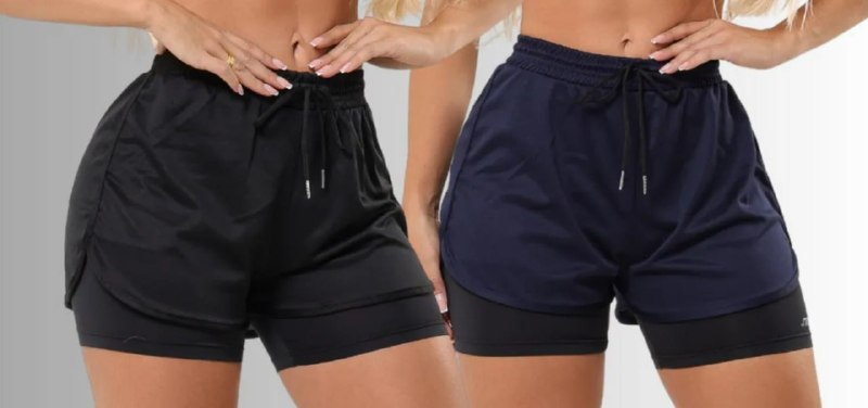 🩳 Kit 2 Short Duplos Compressão Fitness