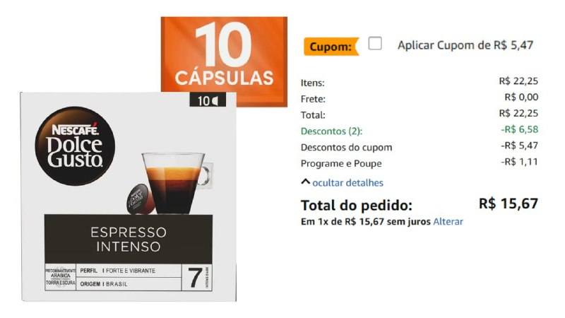 OURO EM CAPSULASDolce Gusto Nescafe Espresso Intenso 10 Cápsulas DE 22 | POR 15,…