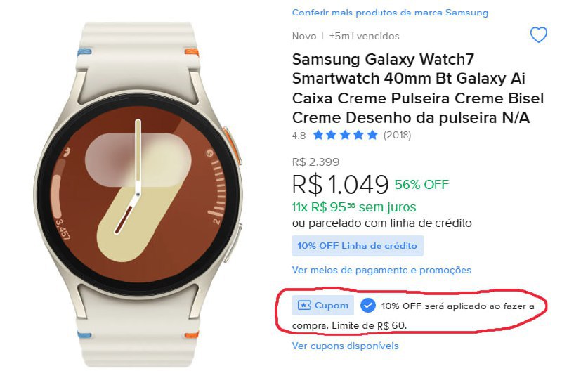 Parcelamento top!!! Samsung Galaxy Watch7 Smartwatch 40mm Bt Galaxy AiSaindo a R…