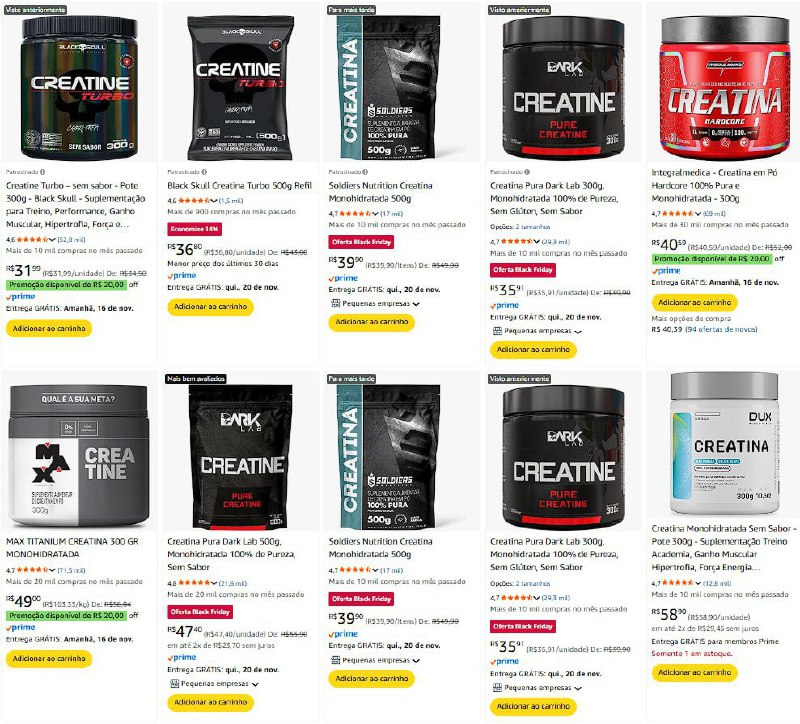 🏃 CORRE QUE A BLACK DA AMAZON TA CHEIA DE PROMO NA CREATINA