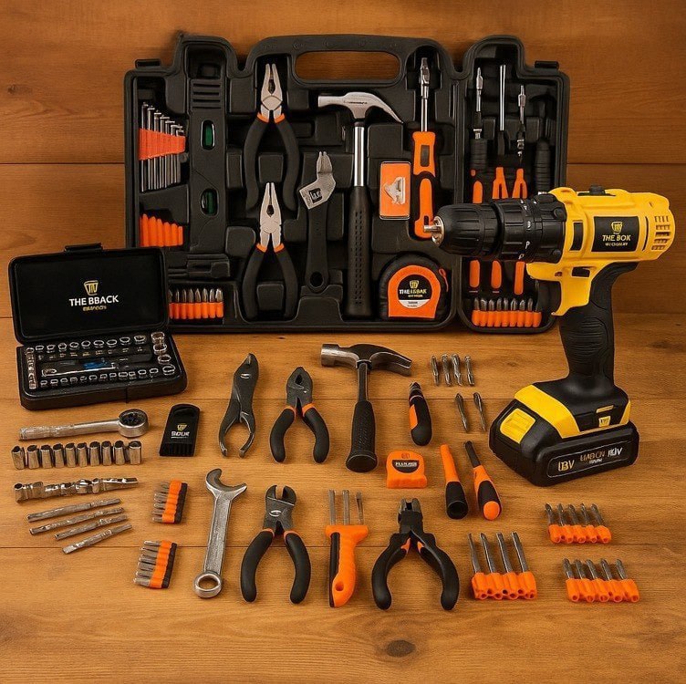 ✅ Jogo De Ferramentas 169 Peças Com Maleta E Furadeira Parafusadeira Sem Fio A Bateria 12v 3/8 10mm The Black Tools
