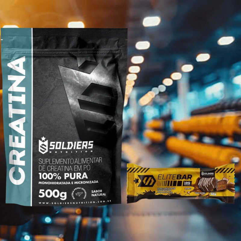 ✅ Kit: Creatina 500g + Barrinha Elitebar Pão de Mel 10g Soldiers Nutrition